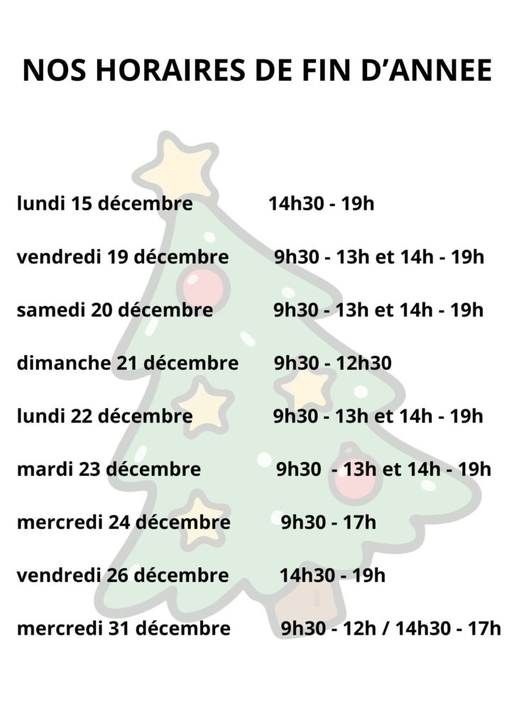 mais en cette fin d’année, nous élargissons nos horaires